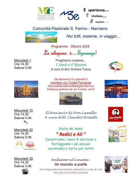 Programma delle attività del mese di Ottobre 25: iniziamo il 01/10 con la catechesi; si prosegue con la crociera sulla…