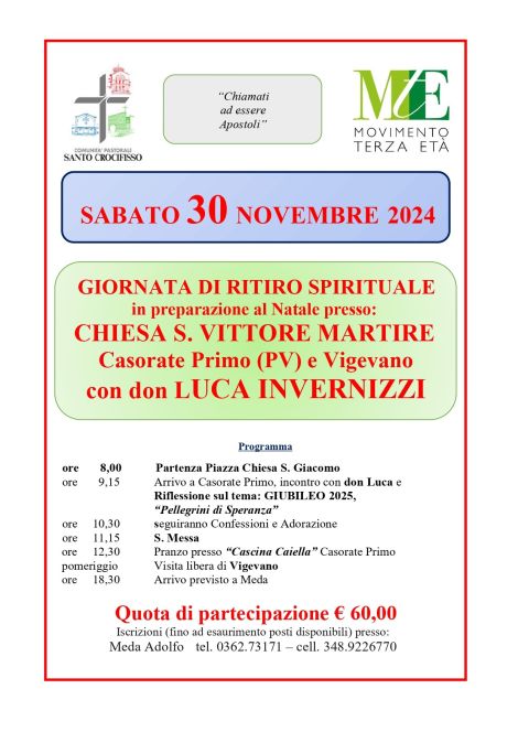 La Comunità Pastorale Santo Crocifisso di Meda organizza una giornata di ritiro spirituale in preparazione al Santo Nat…