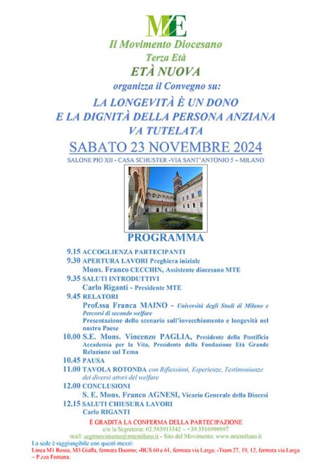 Il Movimento Terza Età-ETA NUOVA propone un convegno dal titolo ” LA LONGEVITA’ E’ UN DONO E LA DIGNITA’ DELLA…