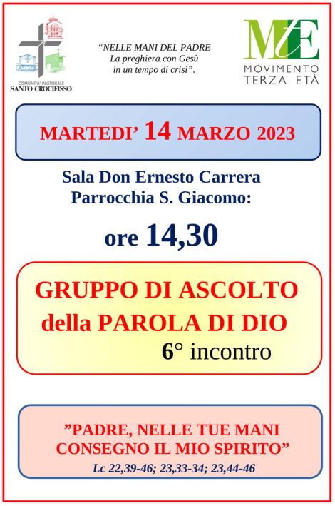 GRUPPO DI ASCOLTO della PAROLA DI DIO 6° incontro