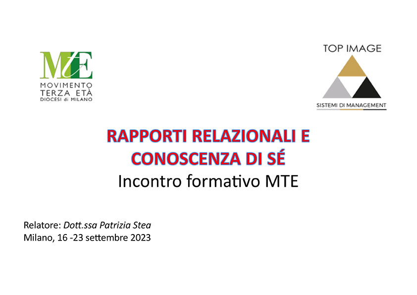 INNOVARE PER CRESCERE INSIEME AL VIA LA FORMAZIONE CULTURALE ED EDUCATIVA DEL MTE (pag.8) La formazione permanente del Movimento, rivolta a tutti i Responsabili, Animatori e associati, riparte.