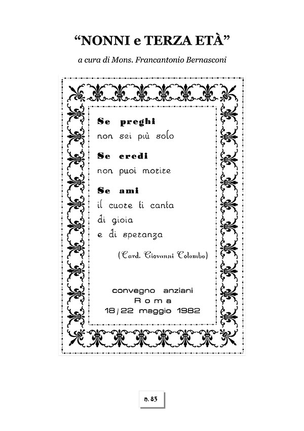 Questo Quaderno è stato pensato inizialmente nell’autunno scorso, quando il Santo Padre Francesco volle dedicare la domenica di fine settembre (29/9) ai nonni, ma ha preso vera consistenza solo in primavera, dopo le udienze dei mercoledì (4 e 11/3), quando il Pontefice ha affrontato il tema del ruolo significativo degli anziani in seno alla famiglia e alla società.