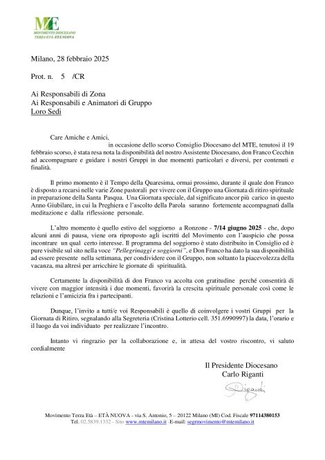 Chi desidera ascoltare delle Pillole spirituali da parte dell’Assistente diocesano, mons. Franco Cecchin, cliccando qui.