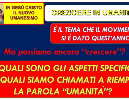 Il tema che vogliamo approfondire quest’anno è “CRESCERE IN UMANITÀ” in quattro particolari aspetti, con i quali cercheremo di riempire la parola “UMANITÀ”: