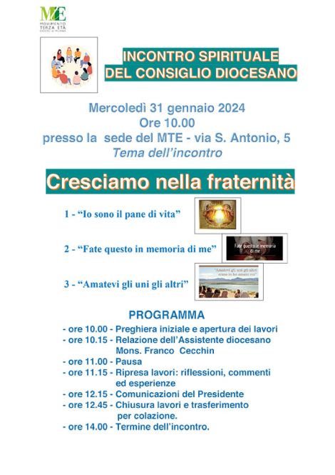 Il Movimento Terza Età- ET° NUOVA è lieta di invitarvi al ritiro spirituale il giorno giovedì 30 gennaio 2025 alle ore…