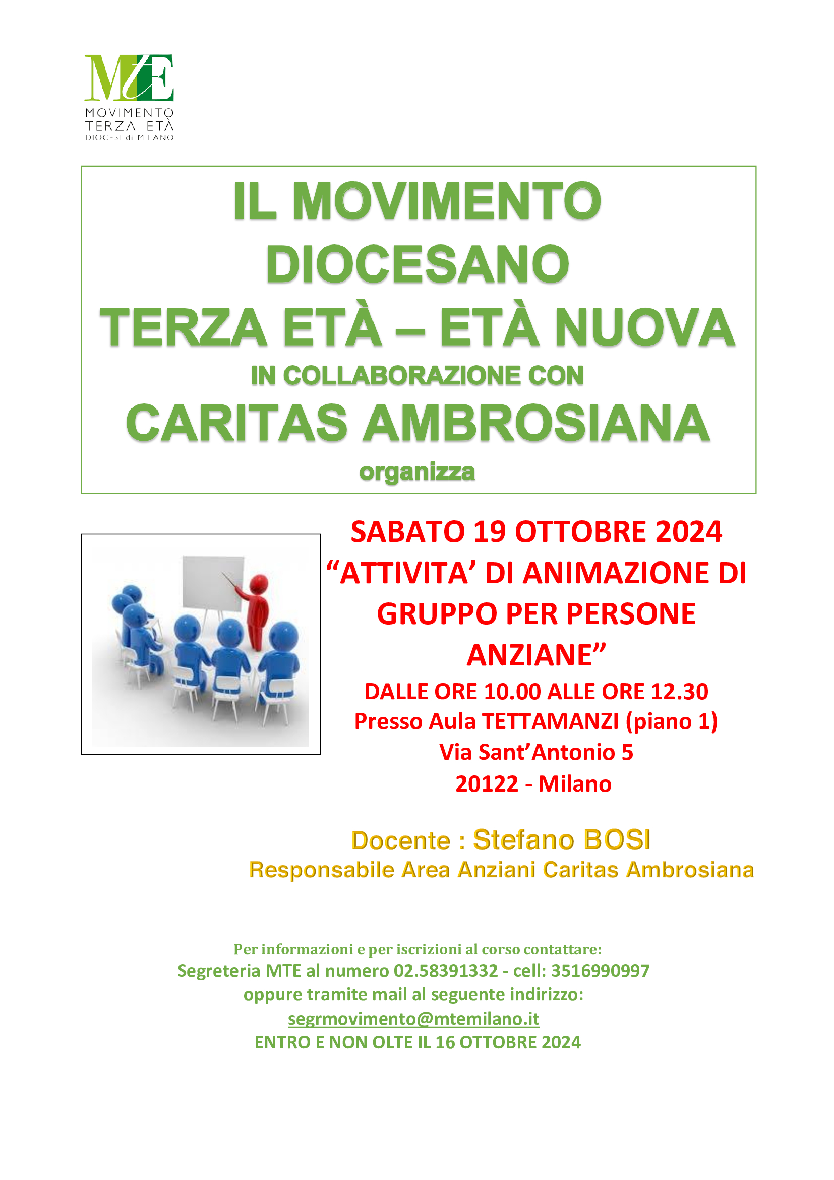 Il corso ha come obiettivo di fornire ai partecipanti alcune riflessione sulle specificità dei percorsi di animazione per persone anziane, sulle possibili attività per favorire la partecipazione il senso di appartenenza, il mantenimento e il potenziamento delle capacità cognitive, espressive e relazionali.